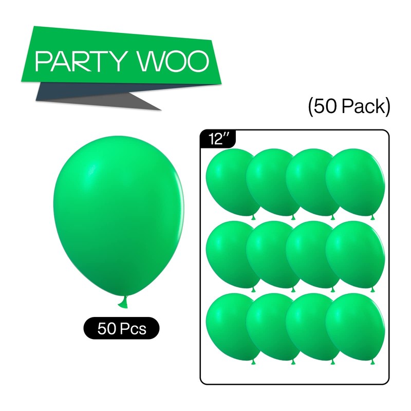 PartyWoo Green Balloons 50 pcs 12 Inch Matte Latex Helium Balloons for Wedding Baby Shower Gender Reveal St Patrick's Day Birthday Graduation Jungle Safari Anniversary Party Decorations Green-Y24