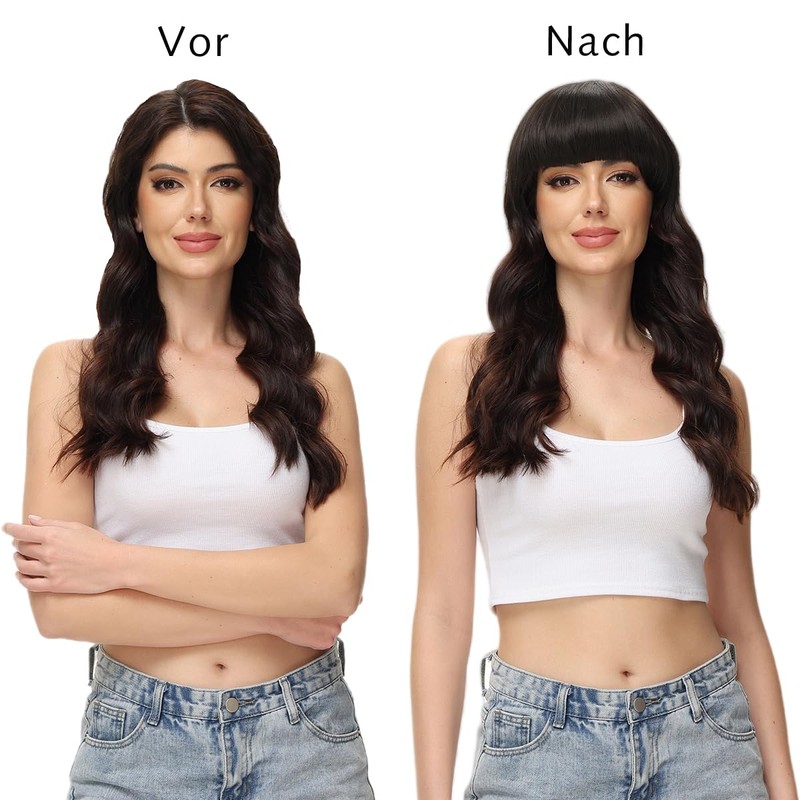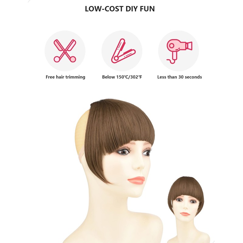 ◆ This thick fringe is designed for an average forehead length. If the fringe extension is too long for you, you can cut it to any length that fits your face. This also applies to the thickness.