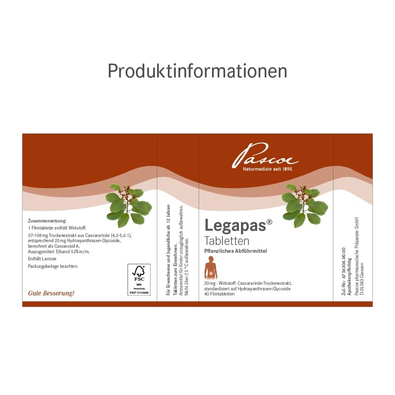 Pascoe® Legapas Tablets: Natural Laxative for Constipation - Promotes Intestinal Emptying - Made from Cascara Bind - Gluten Free (40 Tablets)