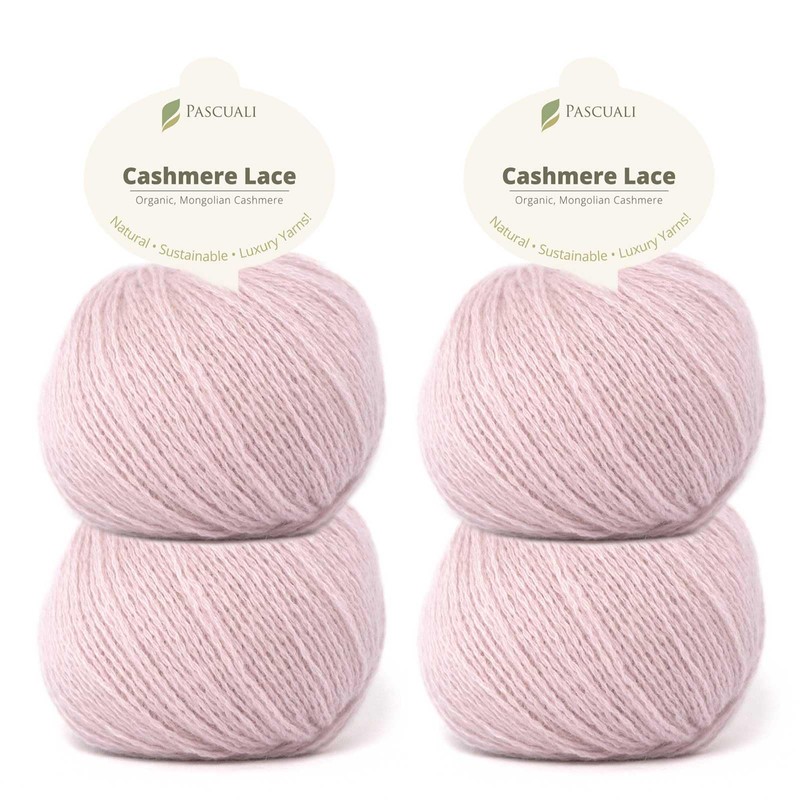PASCUALI Organic Cashmere Lace Knitting Wool 100% Cashmere Wool for Knitting and Crocheting, Set: 4 Balls - 100 g - Colour: Rose Quartz 10