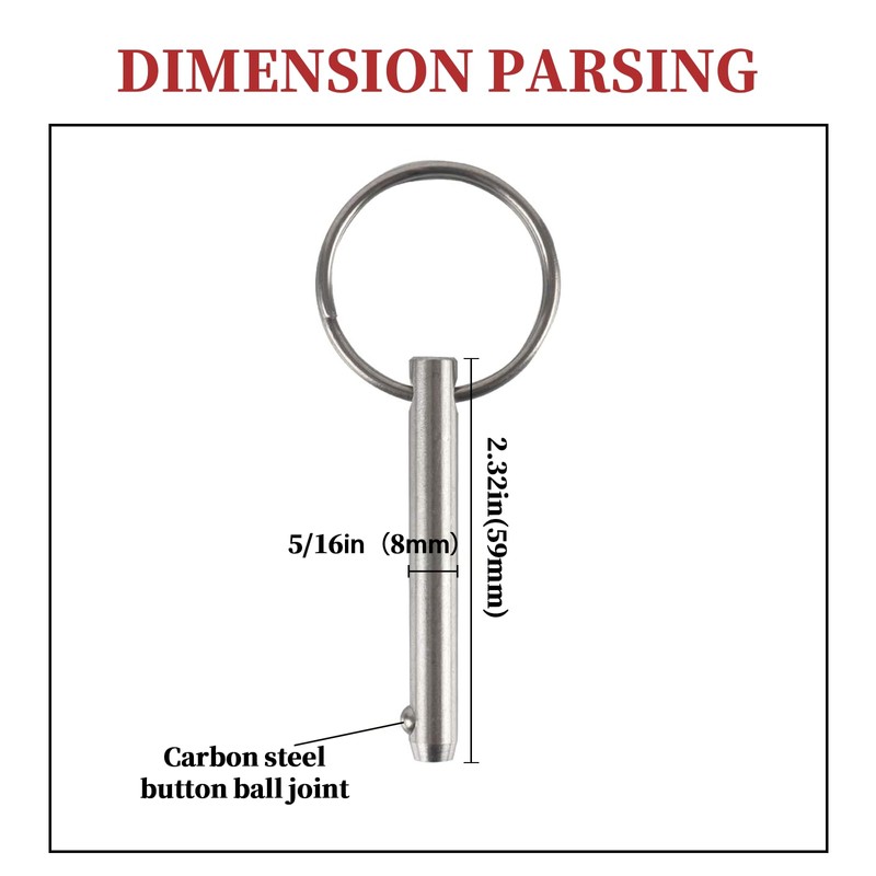 - Precision Dimensions: Diameter 5/16 inch (8mm) and overall length 2.32 inches (59mm) for universal compatibility with standard deck hardware, ensuring secure, snug fits in marine applications