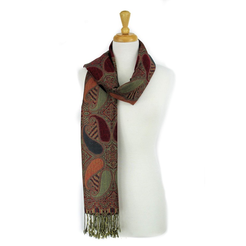 Paskmlna Paisley Pattern Tow Layered Woven Pashmina Shawl Scarf Wrap Stole (A18-022)