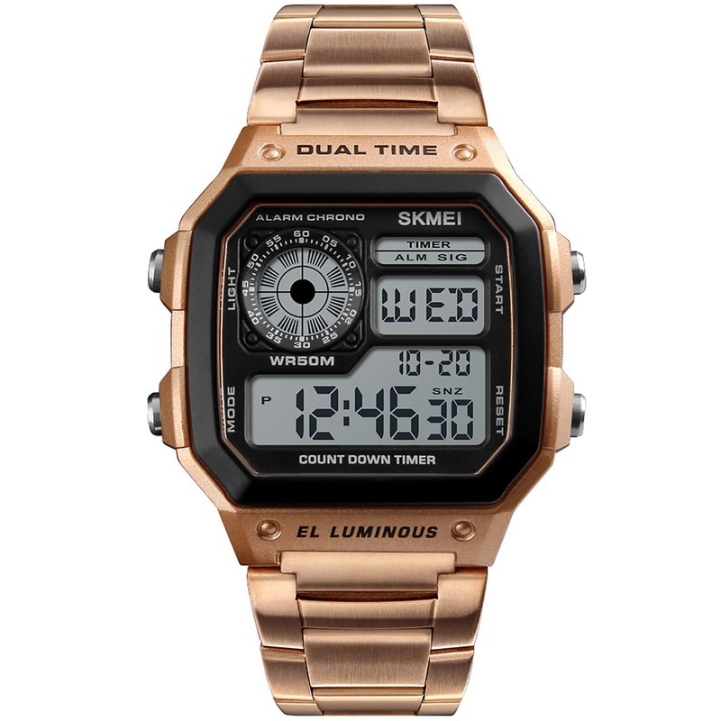 PASOY Men's Digital Multi-Function Watches 2 Time Alarm Stopwatch Countdown Backlight Waterproof Watch (Rose Gold)