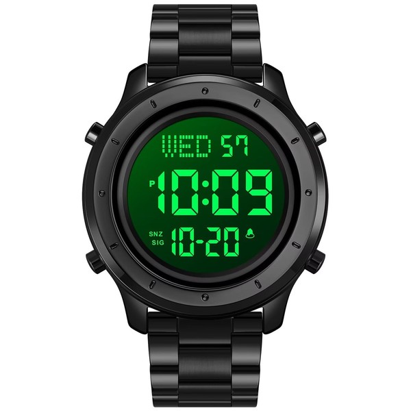 PASOY Mens Big Dial Digital Leather Watch Simple Large Display Countdown Alarm Stopwatch LED Backlight Business Multifunction Watches (Black)