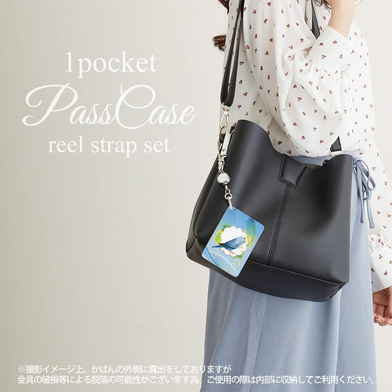 Pass Case, 1 Pocket, Reel Included, Feathers, Parakeet, Bird, Tri, Clear Pocket, Commuter Holder, Card Case, Card Holder, Parakeet Pattern, blue color