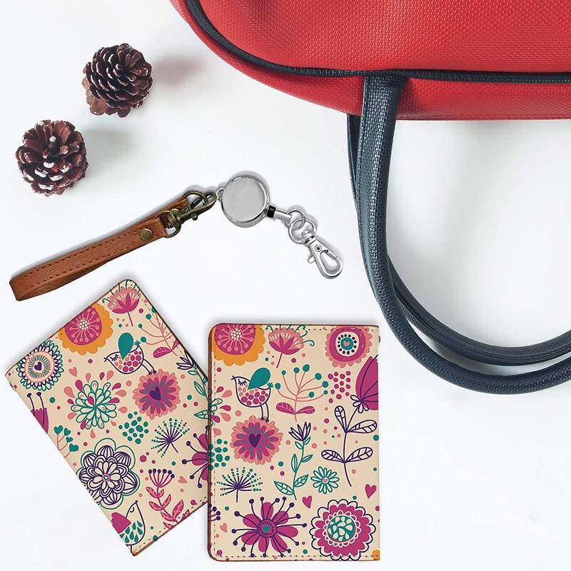 Pass Case, Commuter Pass Case, Reel, Cute, Scandinavian Design, Animals, Birds, Flowers, Bifold, Invisible Shape, Stylish, Women's Scandinavian Style, flower bird beige pink