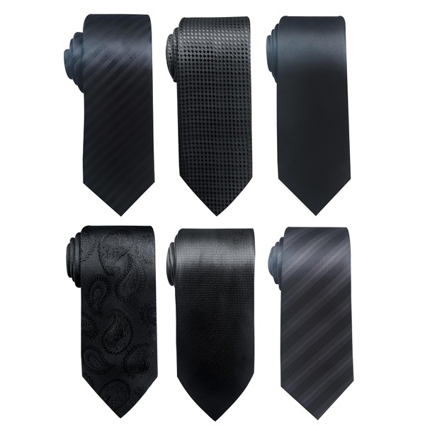 Passabin Tie For Men Necktie Woven Jacquard Neck Ties Set 6 PCS (Black)