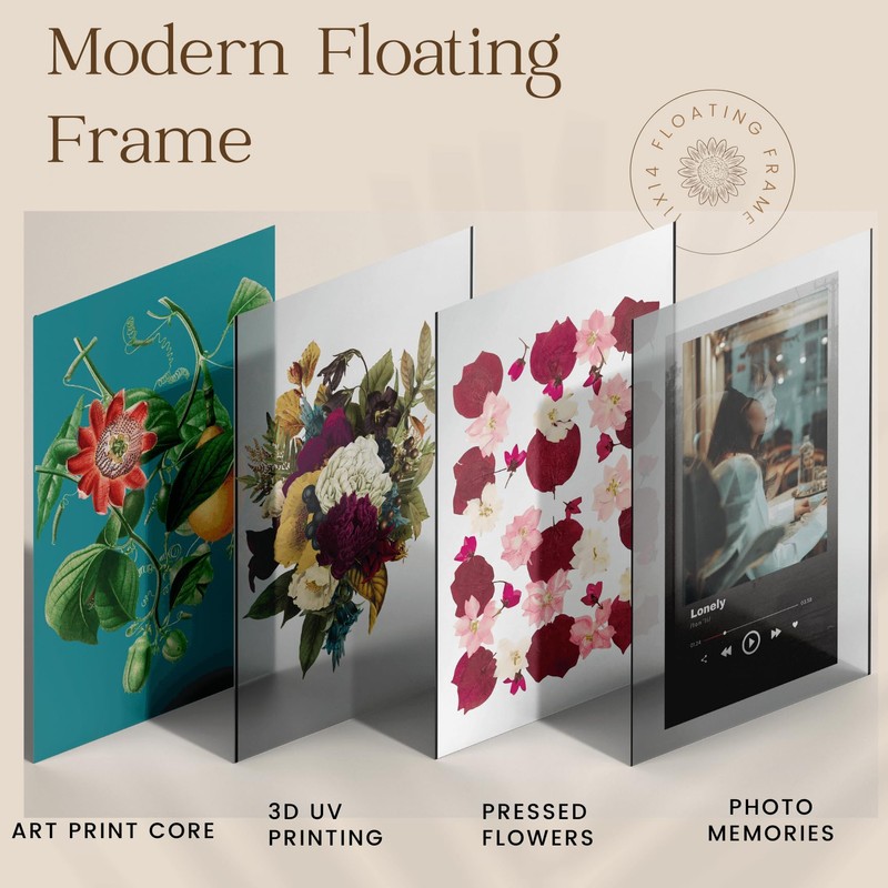 - ①【Canadian Oak Floating Frame-Real Glass】 - These frames stand out with double-layer high-transparency glass and imported Ontario oak, setting them apart from the inferior, brittle MDF frames offered by others. Each frame is hand-polished to reveal an artistic maple texture,italian spraying imparts antique aesthetics. Frames in 7", 10", and 11" sizes use ultra-clear tempered glass, while 20" and 24" sizes employ museum-grade acrylic for added safety and durability.