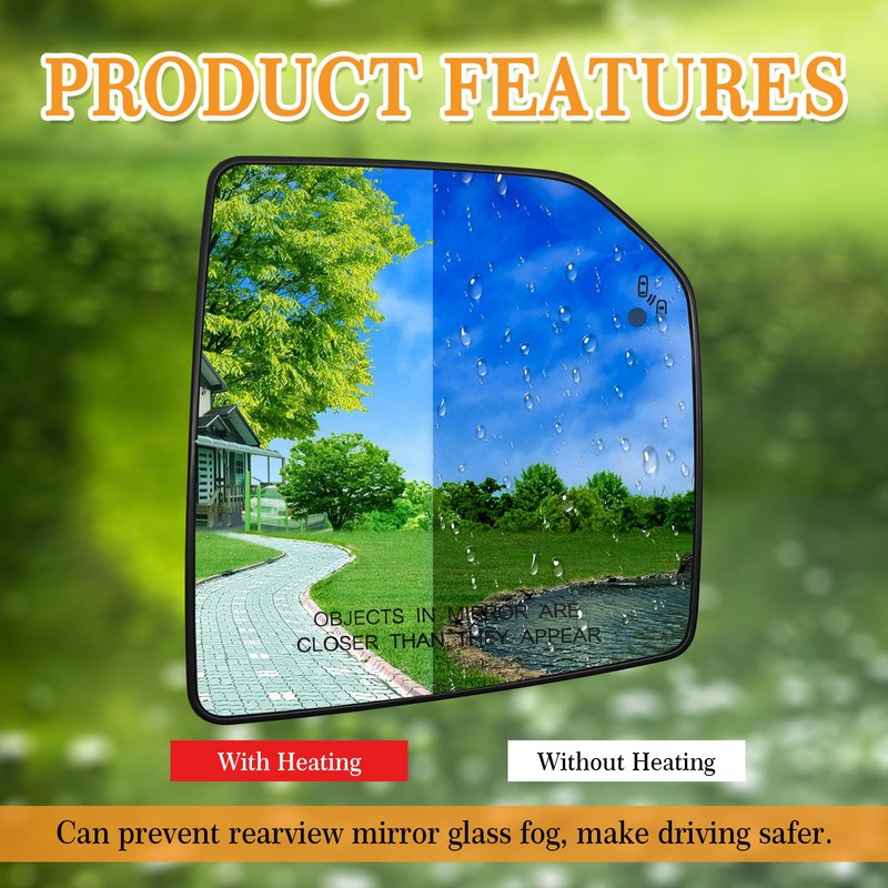 - 【Durability】Made from premium grade materials, better quality glass and ABS for clearer visibility, mirrors fast heating and even heating, which provide a clear vision to ensure driving safety.