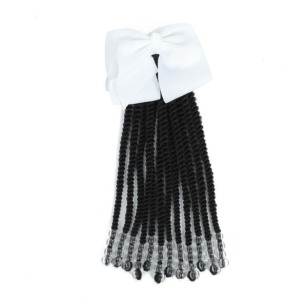Passion Twist Kids Ponytail With Beads Braids Hair Extension Detachable Synthetic Curly Hairpieces With Bows Protective Easy Hairstyle For Girls Toddlers Children Gift (Clear, Twist-9inch)