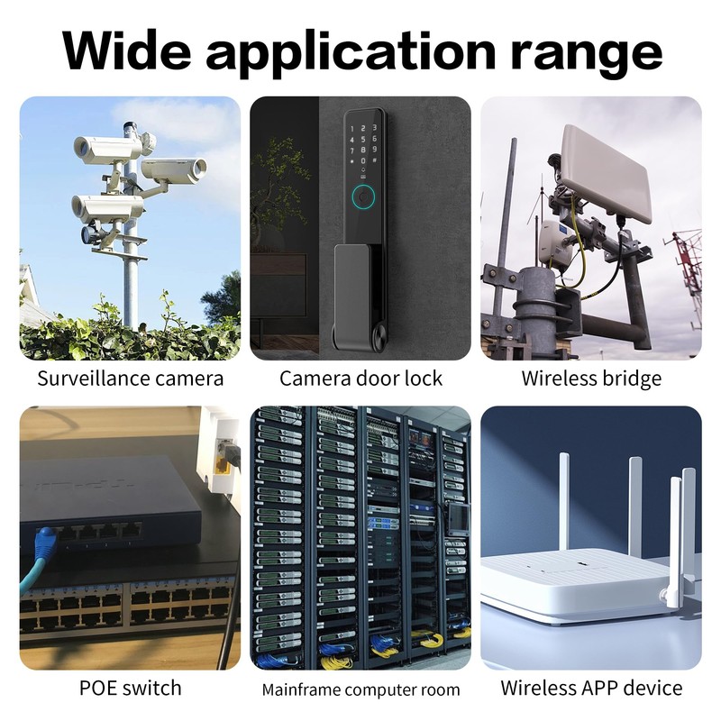 - Broad Compatibility: Supports IEEE 802.3af/at standards, ideal for network cameras, wireless access points (APs), IP phones, and other PoE-enabled devices.