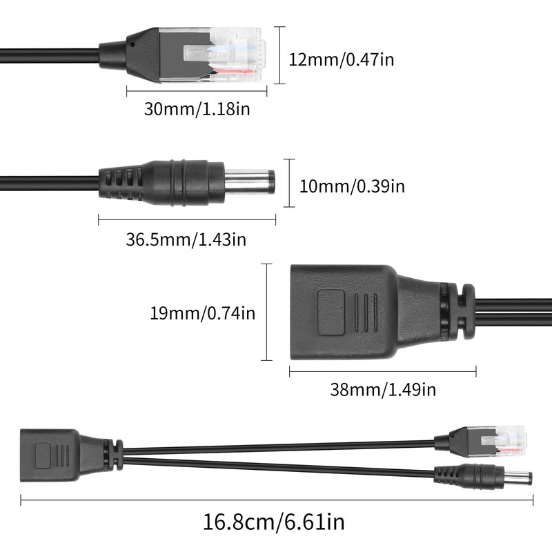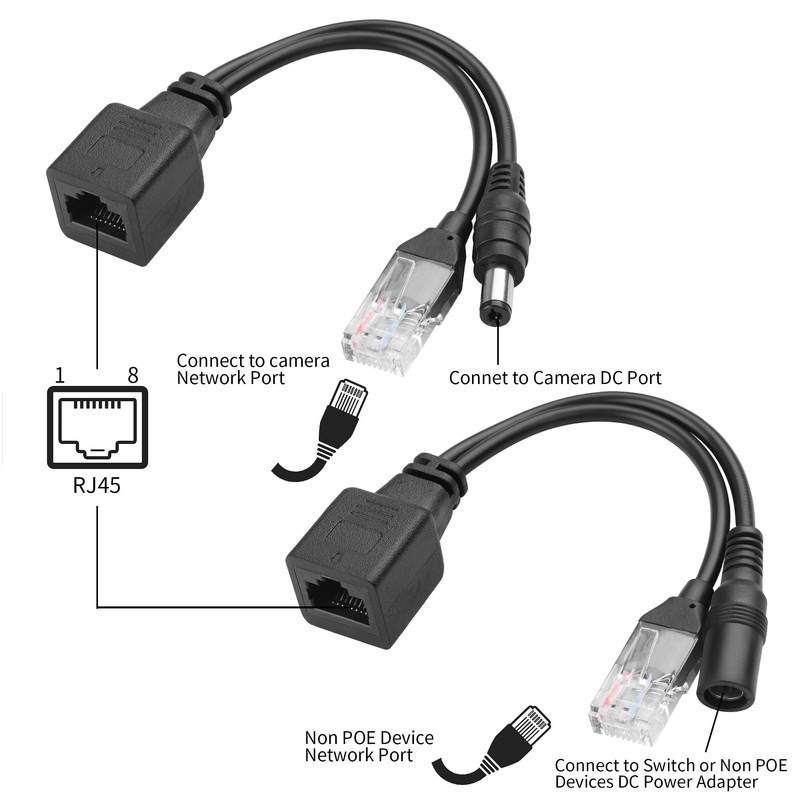 - Efficient PoE Signal Separation: Splits Power over Ethernet (PoE) signals into independent data (RJ45) and power (DC port), compatible with 12V/24V/48V devices.