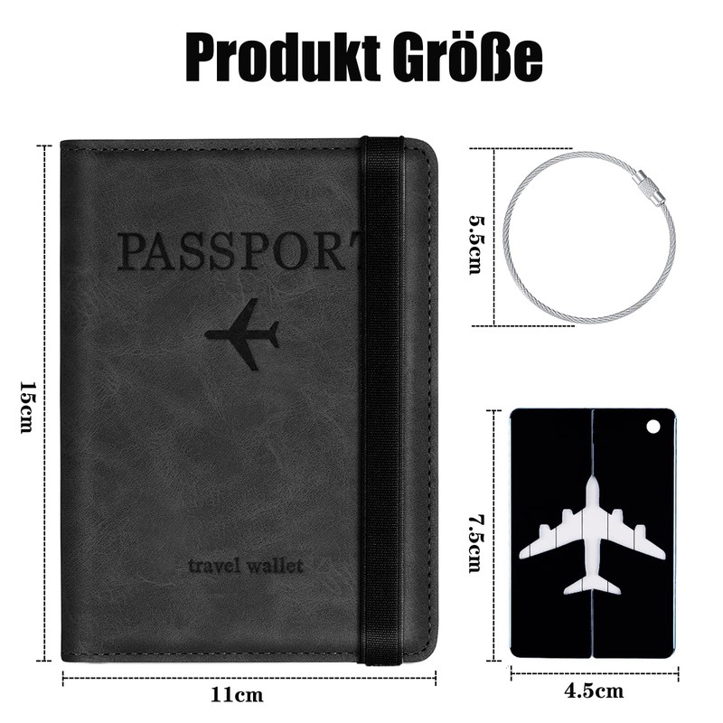 - Travel essentials: the weight of the passport cover (vaccination certificate cover leather look) is 70 g, sizes: 15 x 11 x 1 cm (5.8 inches x 4.3 inches x 0.39 inches), high-quality passport cover with large capacity. You can easily carry all items: vaccination card, passport, bording passport, ticket, credit card, ID card and other items. P.P.Pack.Pack* Passport cover + 1 x luggage tag