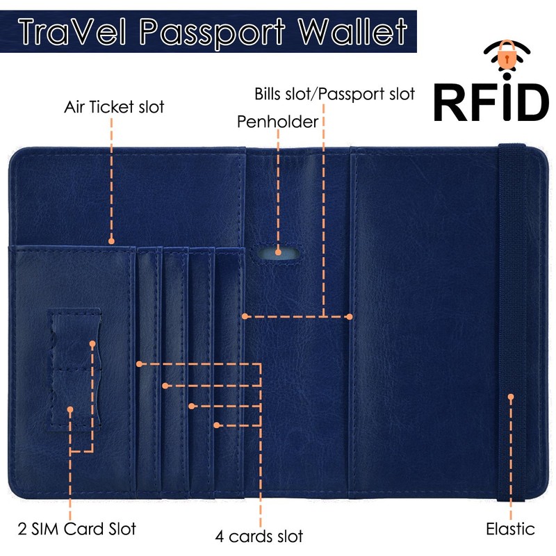 - MULTIPOCKET STRUCTURE: 1 Passport pouch, 2 Card slots, 1 ID Pouch, 2 ticket compartment, 1 Zip pocket, 1 Sim card slot, 1 Pen holder; The passport case is ultra lightweight and will not add unnecessary bulk when hold in hands or slide it into bags