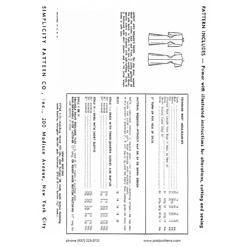 This 1940s Slim Dress Sewing Pattern was originally released by The Simplicity Pattern Co
