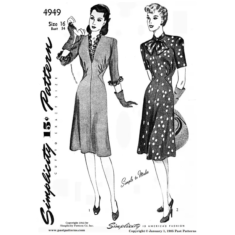 Past Patterns 4949 - 1940s Slim Dress Sewing Pattern bust size 34" b34