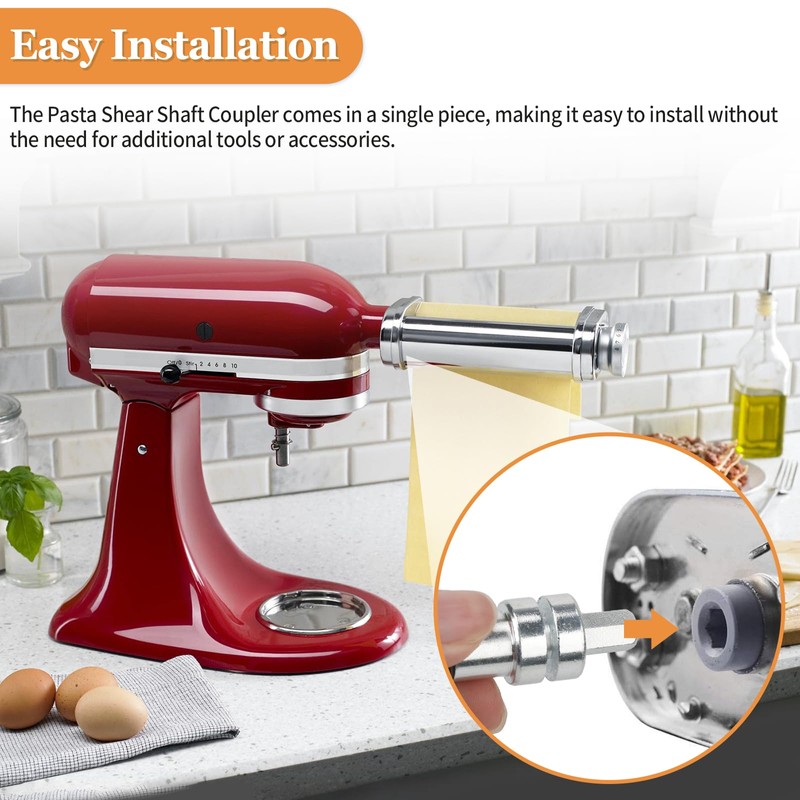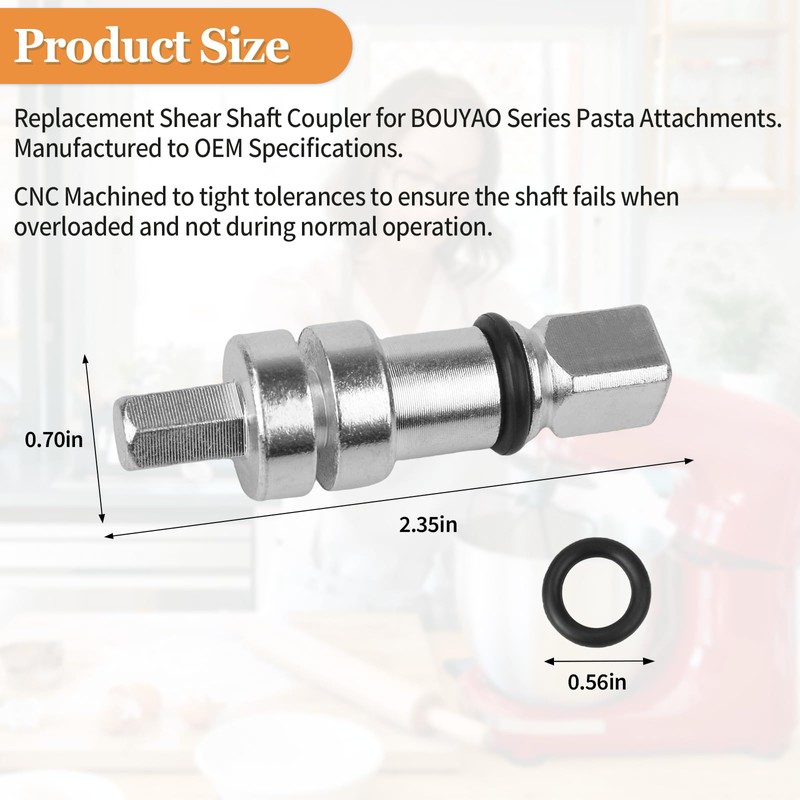 - Easy Installation: The Pasta Shear Shaft Coupler comes in a single piece, making it easy to install without the need for additional tools or accessories. This product is used to repair broken kitchen pasta rolls or cutter attachments. You only need to fix the pasta attachment instead of replacing the entire attachment, saving a lot of money. Drive shear shafts are CNC machined and fails when overloaded to prevent further damage to the attachment, functioning as the original part.