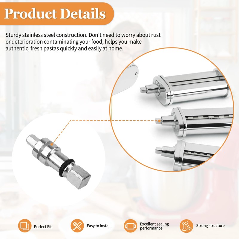 - Compatible Shear Shaft Coupler: This shear shaft coupler is designed specifically for KitchenAid Pasta Attachments KSMP Series (KSMPCA, KSMPRA, KSMPSA, 5KSMPRA, 5KSMPSA) Roller and Cutter Attachments, fits to drum and tool accessories KSMPCA0, KSMPSA0, KSMPRA0, 5KSMPRA0, 5KSMPSA0 Etc. Providing a perfect fit and reliable performance. OEM specifications: nickel plated alloy steel construction.