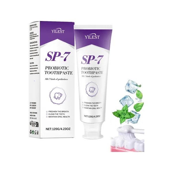 La pasta dentífrica Sp-7 se centra en la limpieza bucal profunda. Su fórmula exclusiva con tecnología Sp-7 repele eficazmente las bacterias que causan el mal aliento, para que puedas sentirte seguro en cualquier situación social.