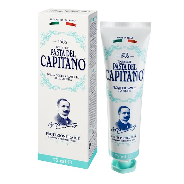 Pasta del Capitano 1905, Caries Protection Toothpaste, Ideal Solution for Comprehensive Protection Against Plaque and Caries, Antibacterial Effect, 100% Made in Italy, 75 ml Tube