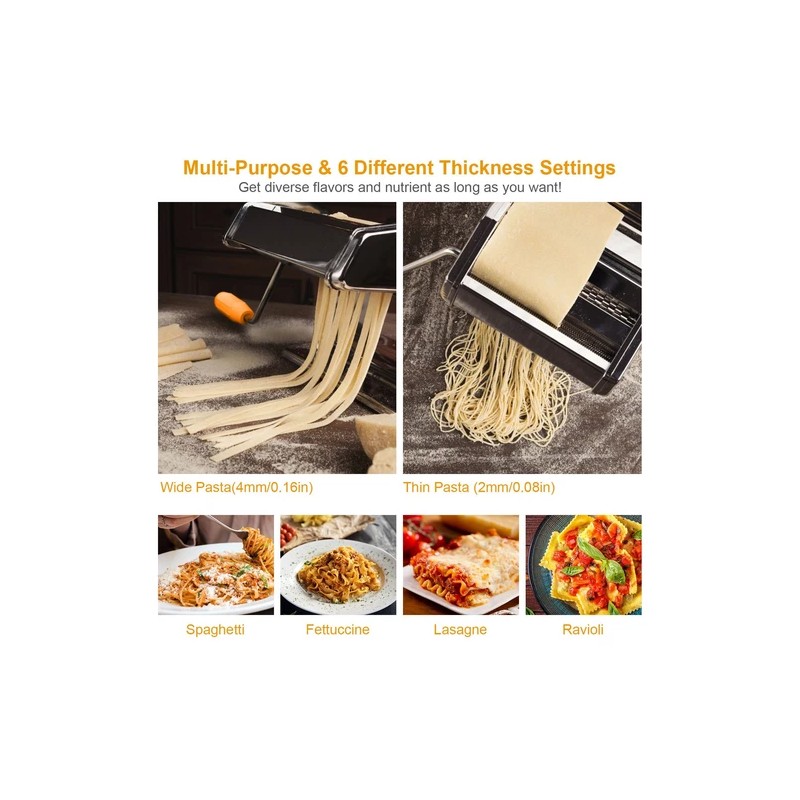 Pasta Maker Machine 180 Roller Adjustable Thickness 2-in-1 Noodles Maker Cutter