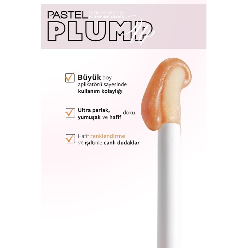 - Mentol ve chili pepper baharatlı bileşen içeren formülü ile dolgunlaştırıcı etkili Pastel Plump-Up dudak parlatıcısı