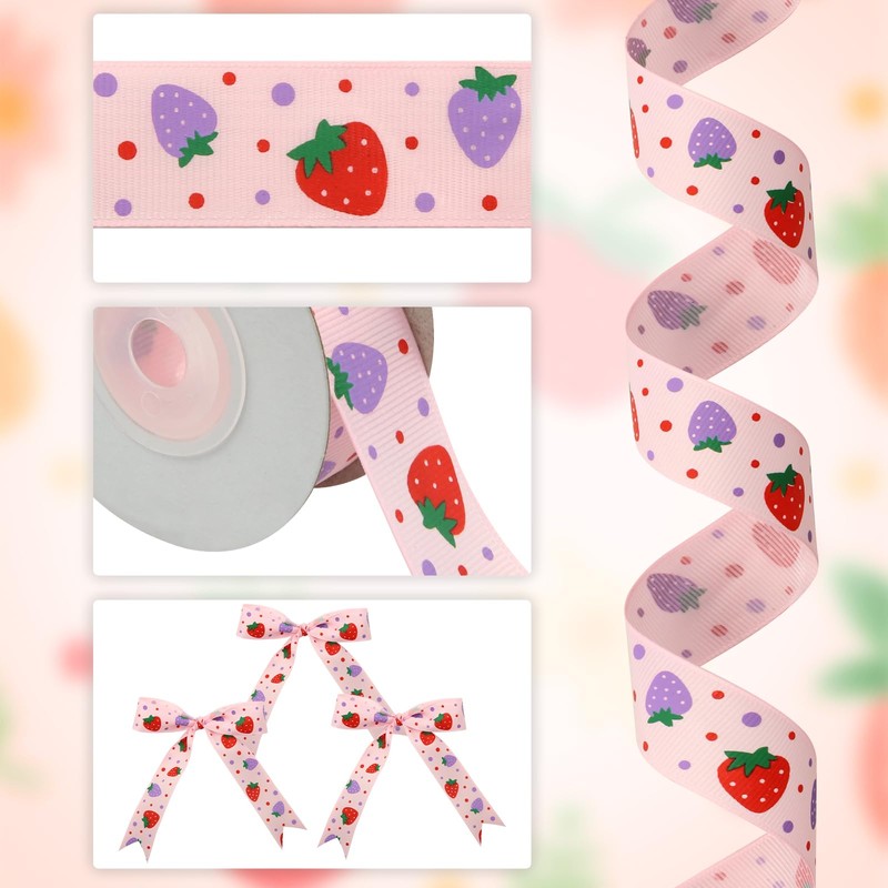 - 🍓【What You Get】Grosgrain/Satin Ribbon 1 roll in 10 yards (30 feet) in length and 2.5cm/1 inch in width. Pink and Red Strawberry With polka dots in various size on white Color makes your decor more eye-catching.