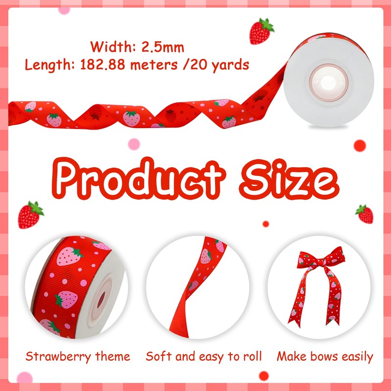 • 🍓【What You Get】 Grosgrain/Satin Ribbon 1 roll in 20 yards (60 feet) in length and 1 inch in width. Pink and Red Strawberry With polka dots in various size on white Color makes your decor more eye-catching.