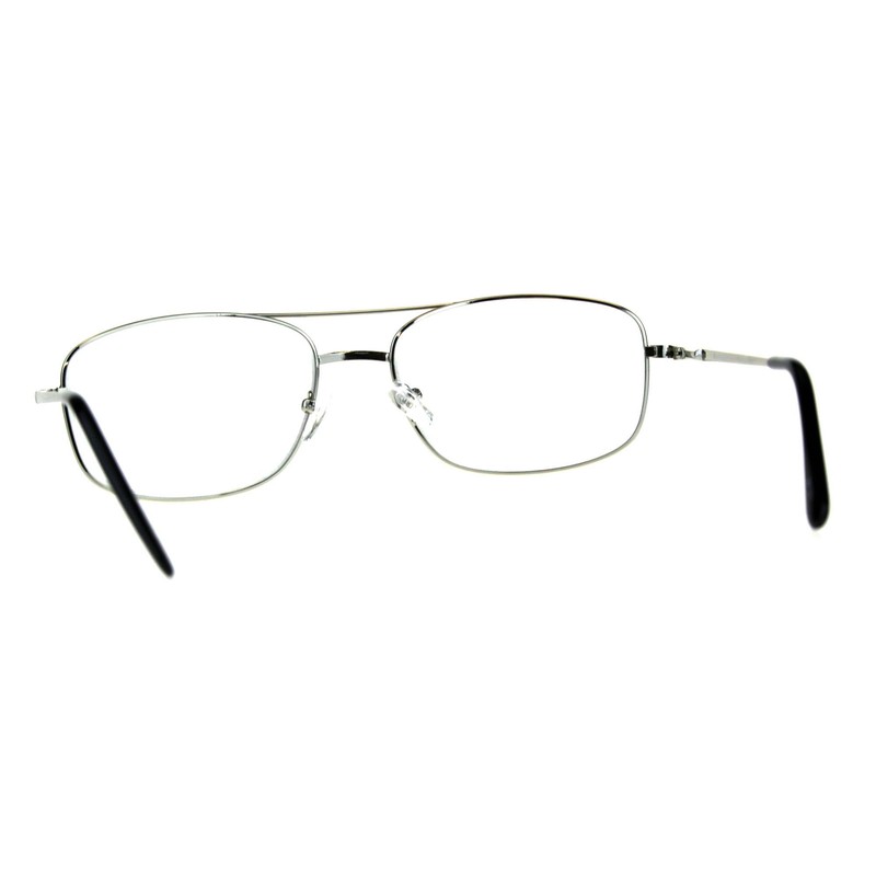 PASTL Clear Glasses Bifocal Reading Lens Metal Rectangular Spring Hinge Silver +1.5