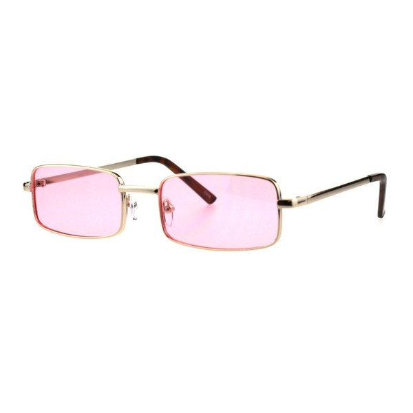 PASTL Rectangular Sunglasses Unisex Fashion Metal Frame Gold, Pink Lens UV 400