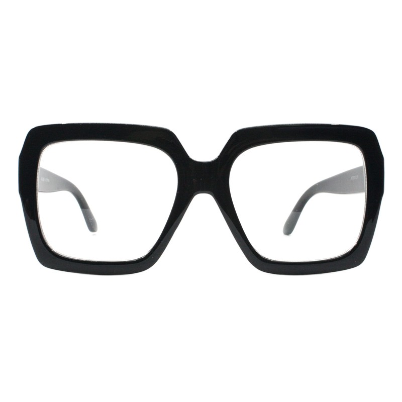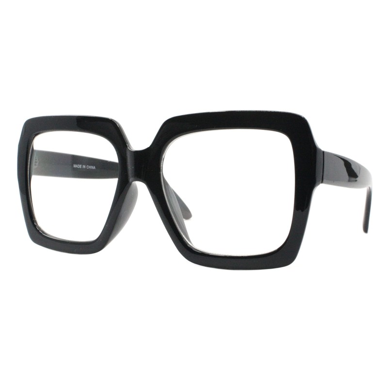 PASTL SUPER Oversized XL Big Wide Square Frame Clear Lens Glasses UV 400 Shiny Black