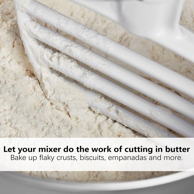 - More efficient - If you don't want to make the pie crust yourself then the pastry mixing attachment will help keep your hands free. We have proved through experiments that the design of this shape can break the cold butter into small pieces faster and mix it with the dough thoroughly, effectively reducing the occurrence of over-mixing.