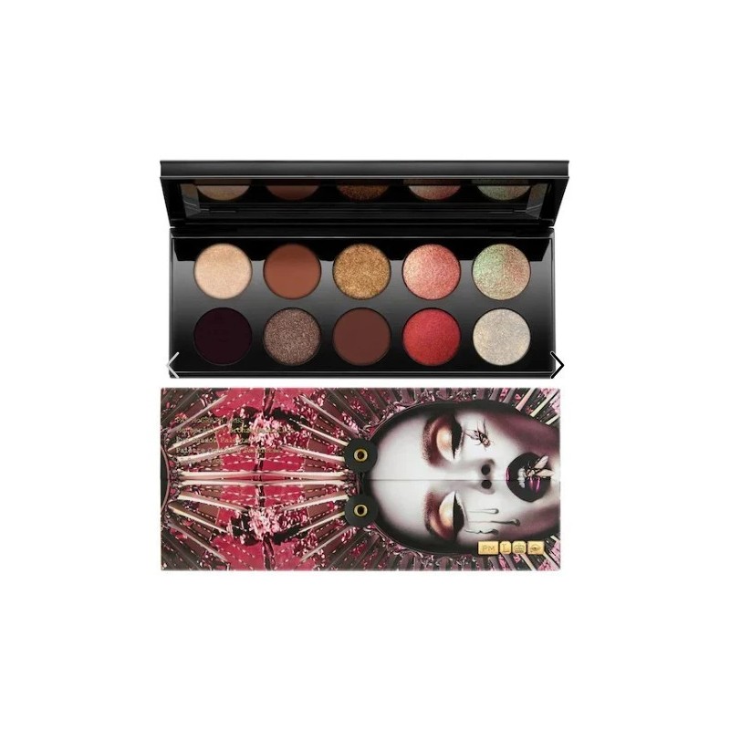 - 10 x 0.068 oz/ 1.95 g Eyeshadows in Skin Show Divine Glow (golden champagne), Entrapment (tawny terracotta matte), Blaze Bronze (glittering golden bronze), Blaze Bronze (glittering golden bronze), VR Fire Opal (color shifting chartreuse), Xtreme Aubergine (blackened matte violet), Guilty Pleasure (silky bronzed taupe), Disobedient (classic matte mahogany), Blitz Flame (molten metallic crimson), Astral Luna Gold (glistening white gold)