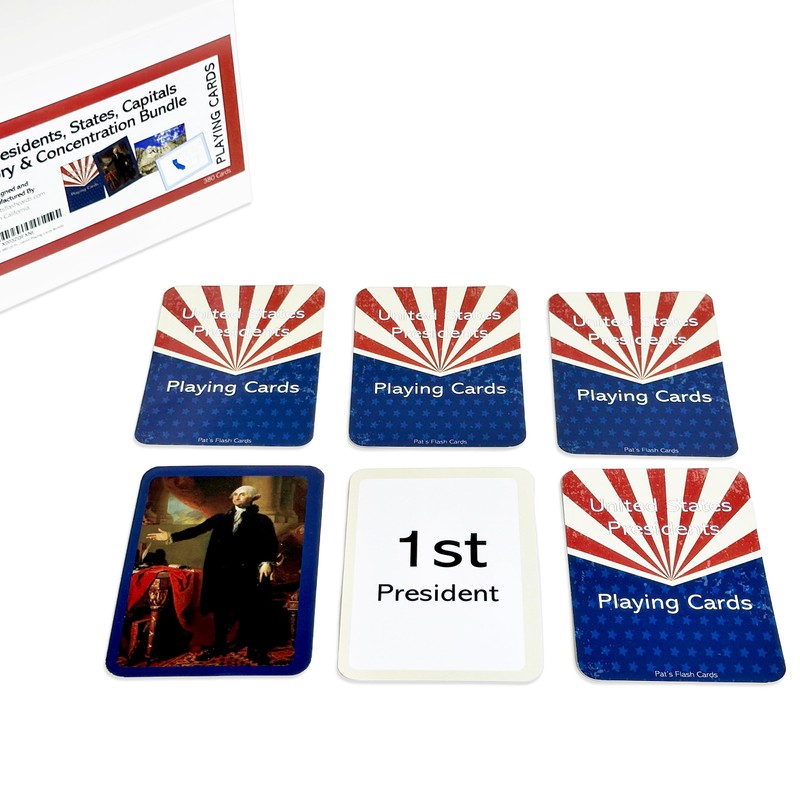 Pat’s Flash Cards 380 US Presidents, States and Capitals Memory and Concentration Playing Cards Bundle