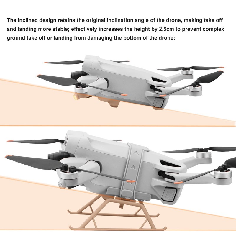 - Compatibilidad: El tren de aterrizaje está especialmente diseñado para drones Mini 3 Mini 3 Pro. El diseño inclinado conserva el ángulo de inclinación original del dron, lo que hace que el despegue y el aterrizaje sean más estables.