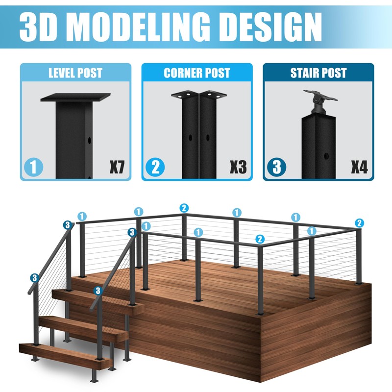 Patavin 42" Black Cable Railing Corner Post-Cable Railing System for Deck Eas...