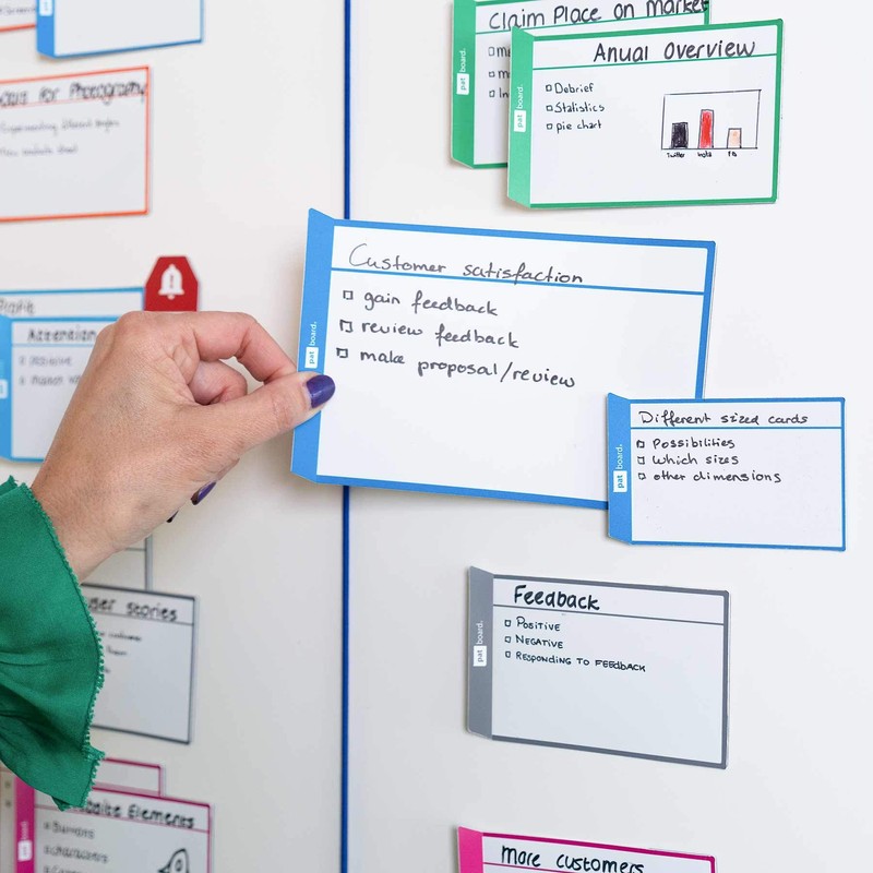 - ✅ The perfect scrum & kanban cards: PATboard Task Cards large are like sticky notes, but better! They are magnetic, stackable, reusable and above all, they look fantastic! The perfect addition to your scrum or kanban board.