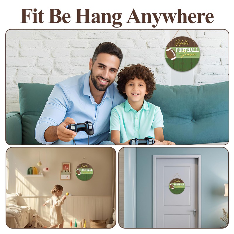 patcate Fall Welcome Sign, Hello Football Season Door Hanger, Football Decorations, 12x12 Round Wood Autumn Sign, Rustic Wall Art Decor for Home Decoration-C16