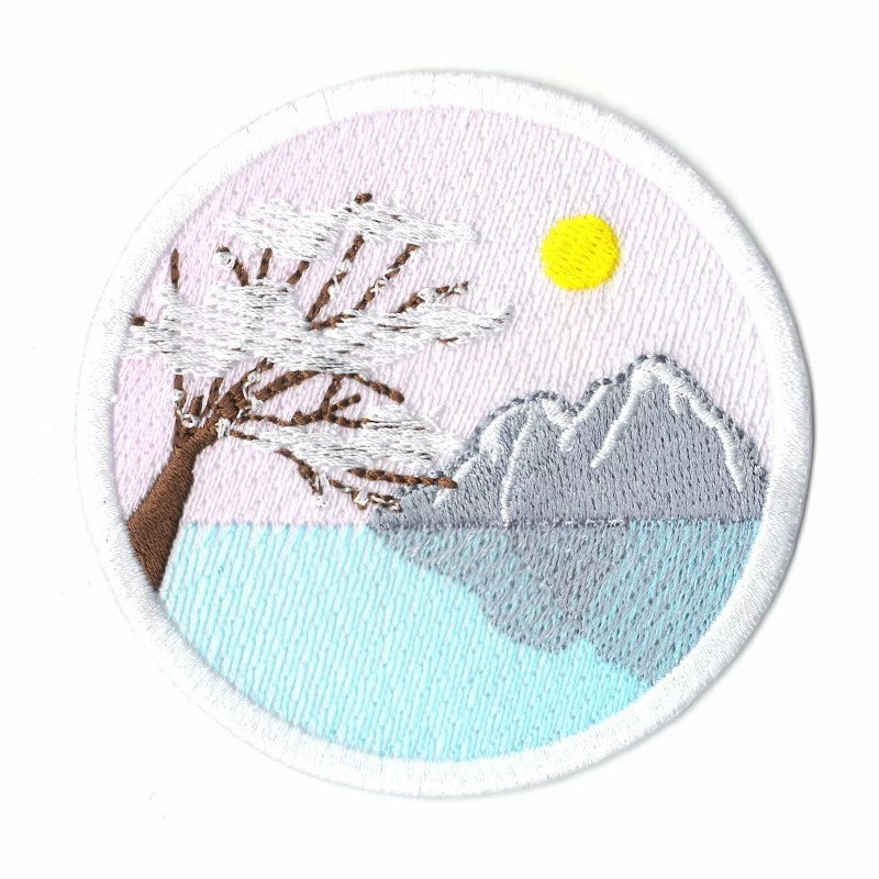Add this Cherry Blossom Tree With Mountains embroidered patch to your collection. This patch comes with easy to apply iron-on backing or can be sewn.Type: EmbroideredEach Measure Approximately: 3" DiameterIron-On: Ready