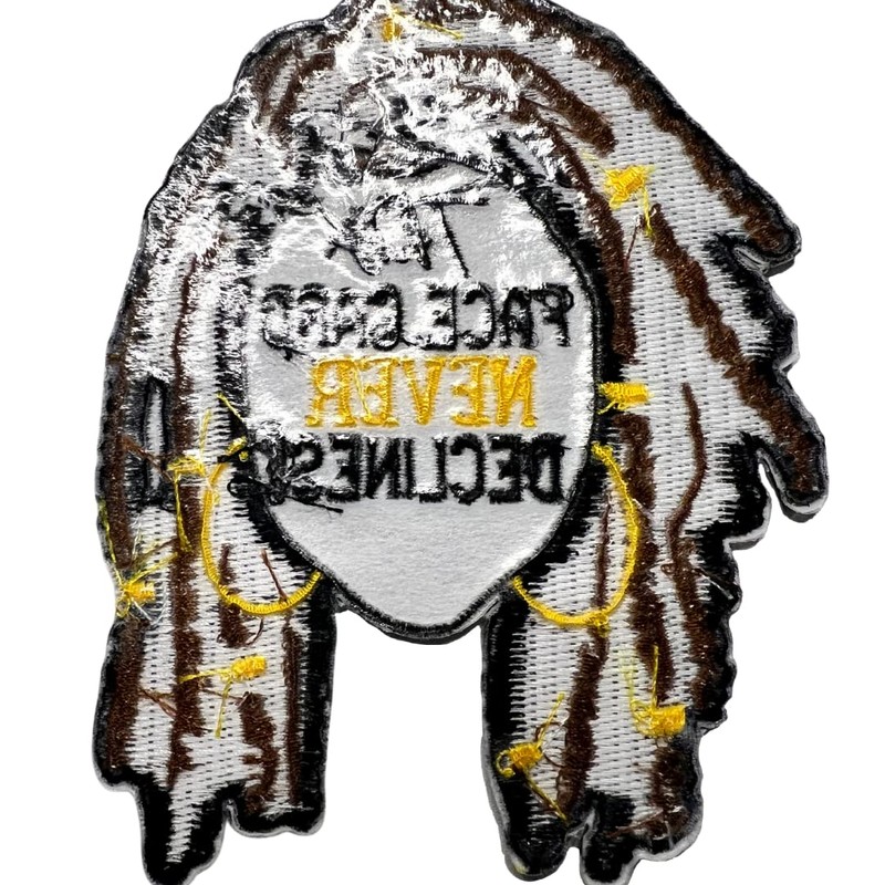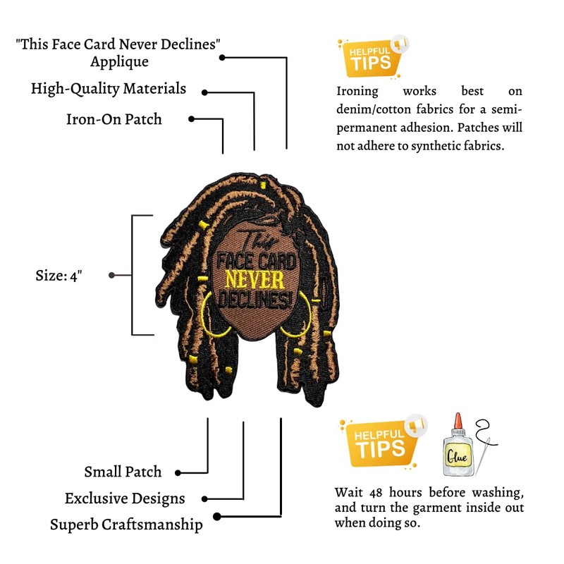 Patch Party Club "This Face Card Never Declines" w/Locs, 4" Iron-on Patch, Applique for Clothing, Hats, Crocs, and Jac