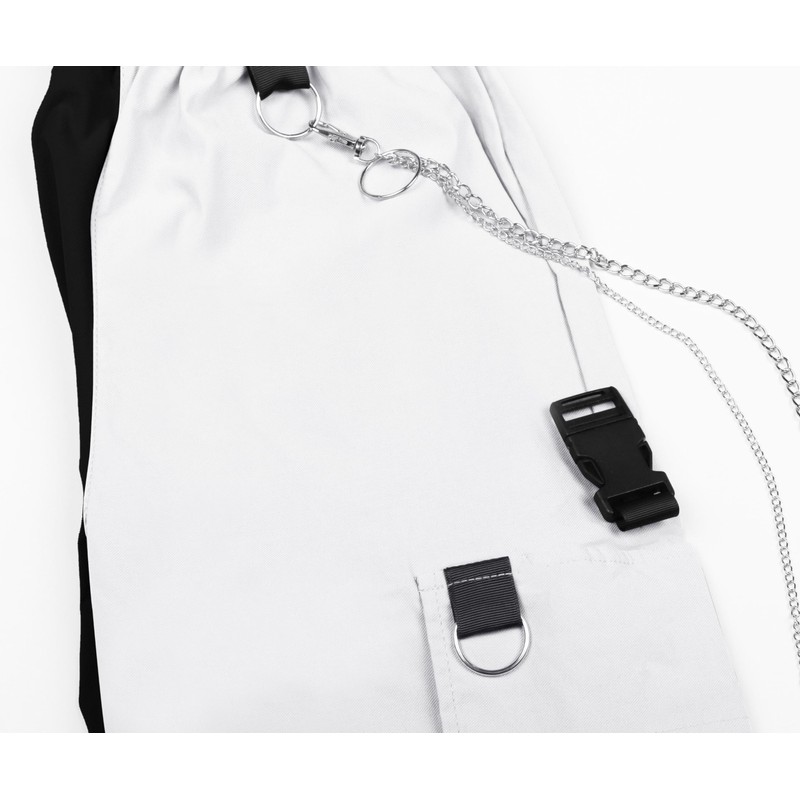 Patchwork Pants Black and White Baggy Cargo Pants with Chain Kpop Fashion Emo Gothic Clothes for Women