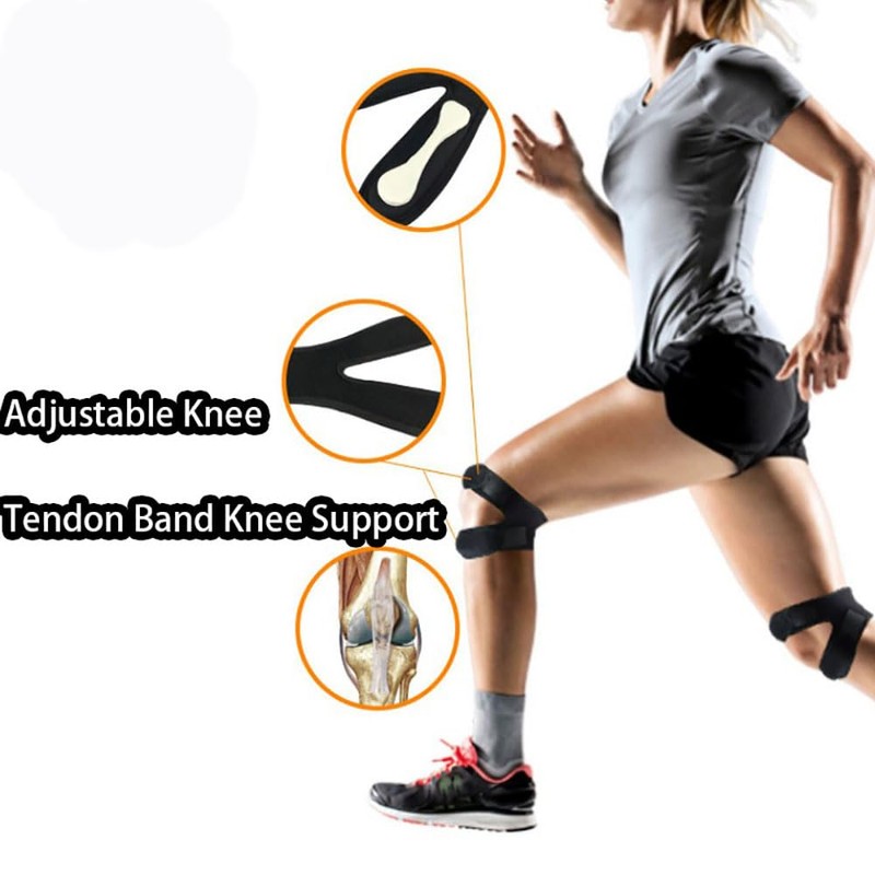 - [Wide Application]: The dual knee support, wraps around your kneecaps to help promote blood circulation and helps keep your knees stay firmly in place while jumping, running and other activities such as badminton, tennis, volleyball, weightlifting, squats, basketball, football etc.