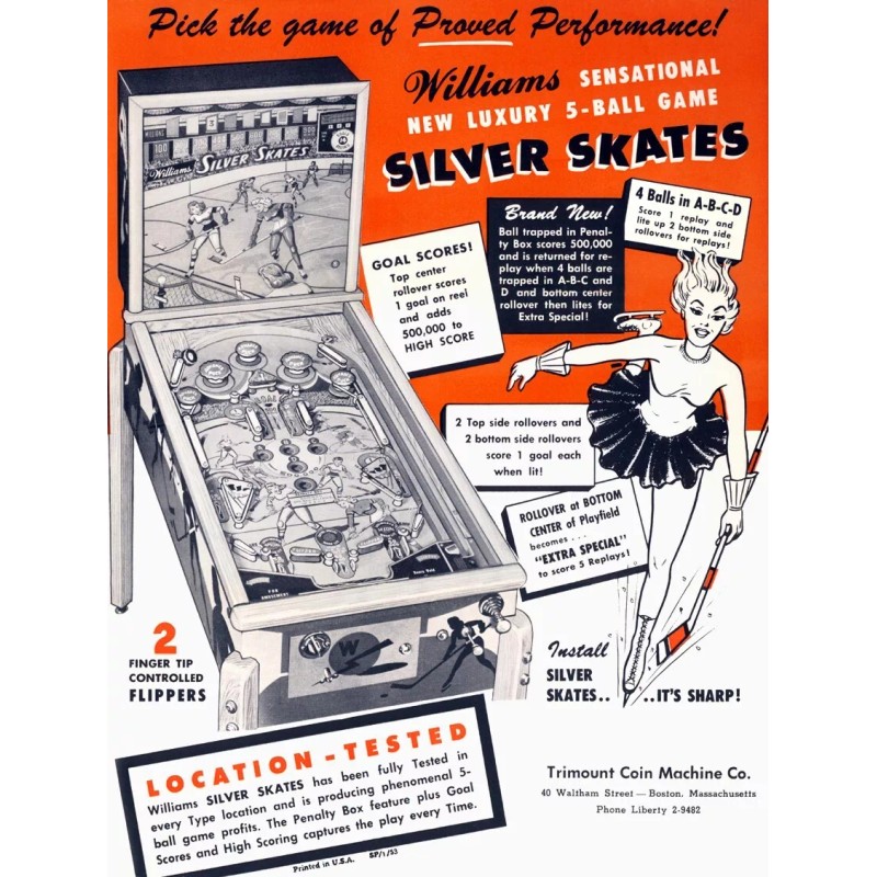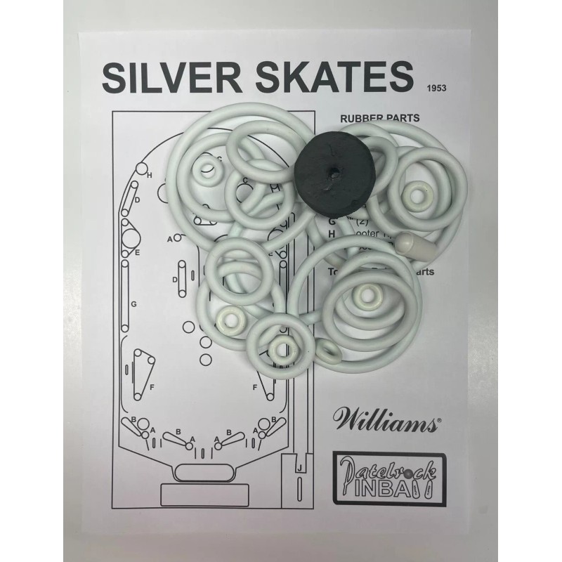Williams Silver Skates rubber ring kit: This kits include the all the rubber rings for your playfield, the flipper rubber (the small flipper use a standard white rubber ring... included in the kit), the bumper post rubber ring, the rebound ball and the ball shooter tip are included! Also, I include the playfield chart for rings placement.