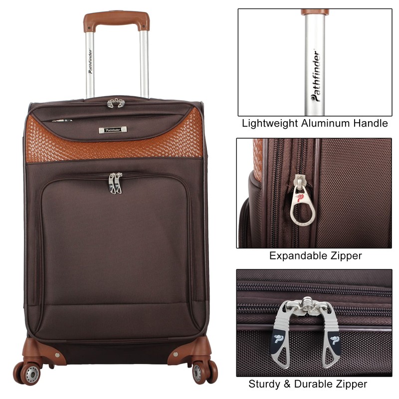 Pathfinder 24 Inch Luggage with Spinner Wheels Softside Expandable Medium Suitcase