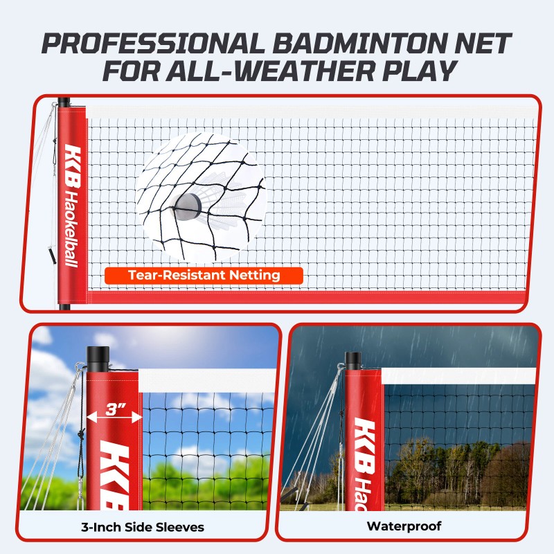 - Tear-Resistant Badminton Net: This 20'x2.5' badminton net is made from 15 layers of PE material, tear-resistant, UV-resistant, and waterproof, perfect for outdoor use. Reinforced corners, 3-inch side sleeves, and 1.25-inch top/bottom sleeves ensure even tension and high visibility.