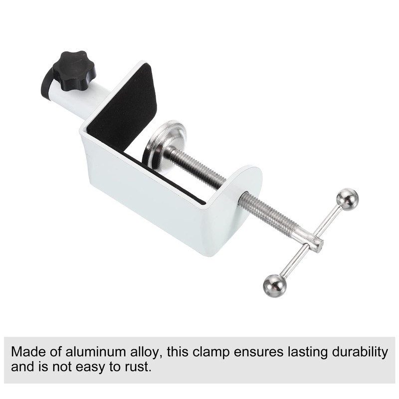 - Advantage: Made of aluminum alloy, this clamp ensures lasting durability and is not easy to rust. The adjustable screw of the desktop mounting clip is designed to better securely mount your microphone on a desktop or other flat surface. There is a soft rubber pad on the table clamp base, that is non-slip and will protect your table from any scratches.