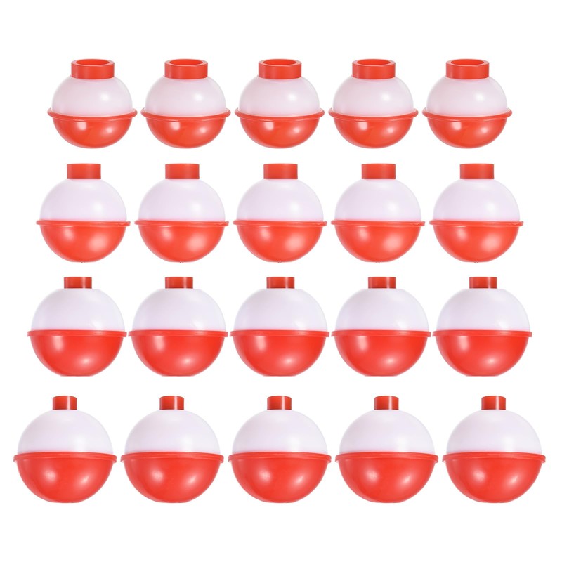 PATIKIL 0.75/1/1.25/1.5 Inch Fishing Bobber Bulk, 20 Pack Hard ABS Push Button Round Buoy Float Bobber Tackle, Red and White