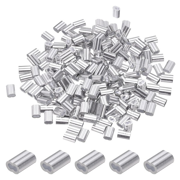 PATIKIL 1/16 inch/1.5 mm Aluminium Crimping Loop Sleeves, Pack of 200 Cable Crimp Ferrules Wire Rope Sleeves Loops for Rigging Railings, Silver Tone