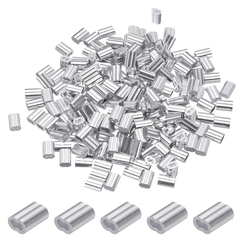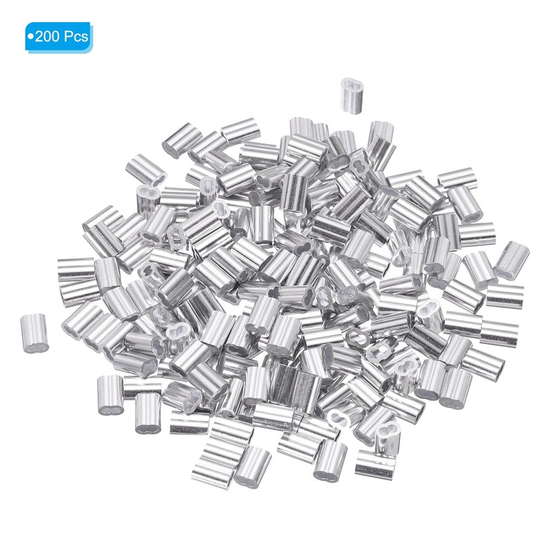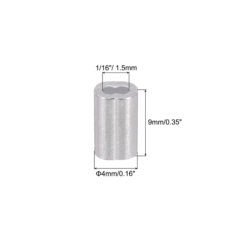 - Material: aluminium; suitable for wire rope and cable diameter: 1/16"/1.5 mm; size: 9x4 mm/0.35x0.16 inch (H*W); thickness: 1 mm/0.04 inch; packing list: 200 x aluminium crimping loop sleeve