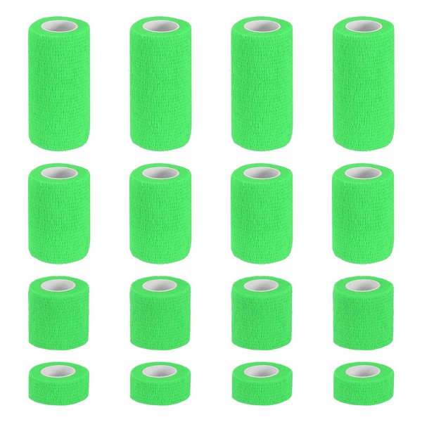 PATIKIL 1"/2"/3"/4" セルフアドヘーシブバンデージラップ 16個 5ヤード エラスティック セルフ ブレスラブル セルフアドヘーシブ ラップテープ 伸ばし アスレチック スポーツ リスト アンクル アウトドア テープ 明るい緑